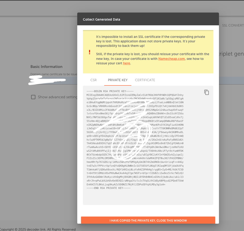 file, but in fact, the key file was already generated when you first created the CSR (Certificate Signing Request)’s PRIVATE KEY.